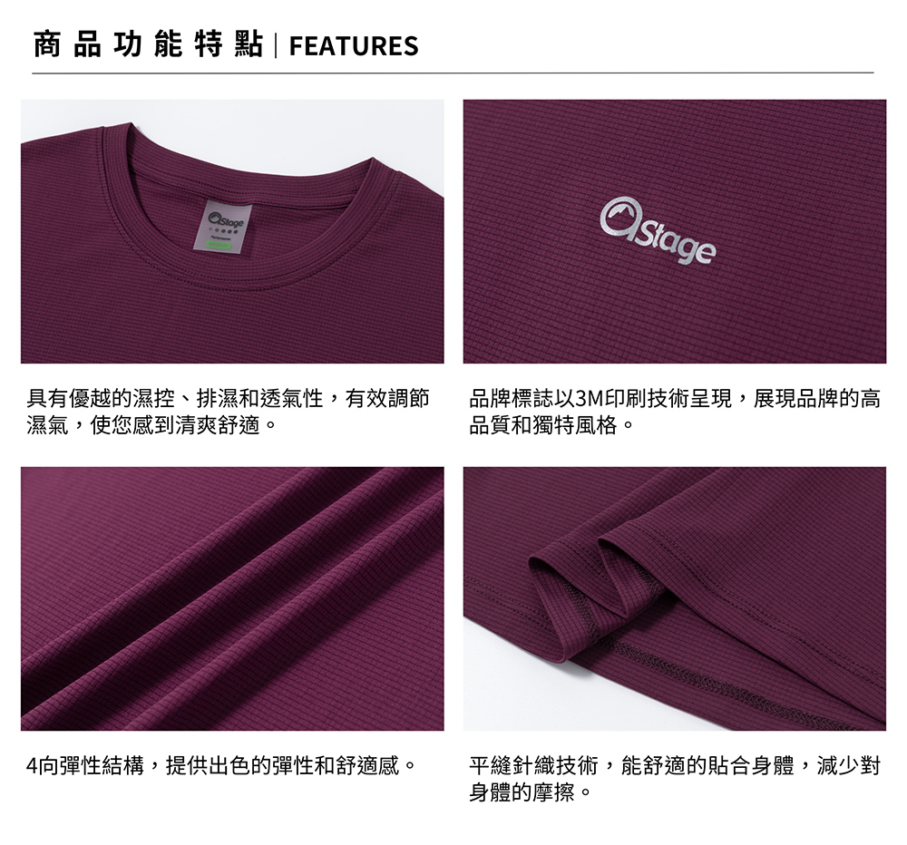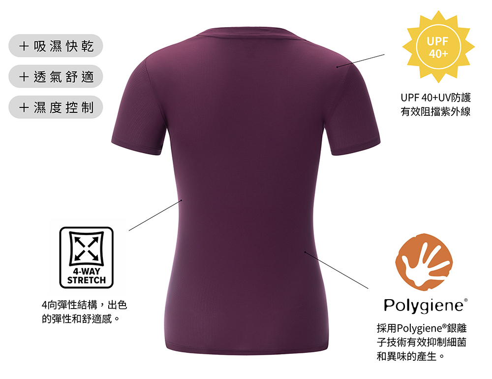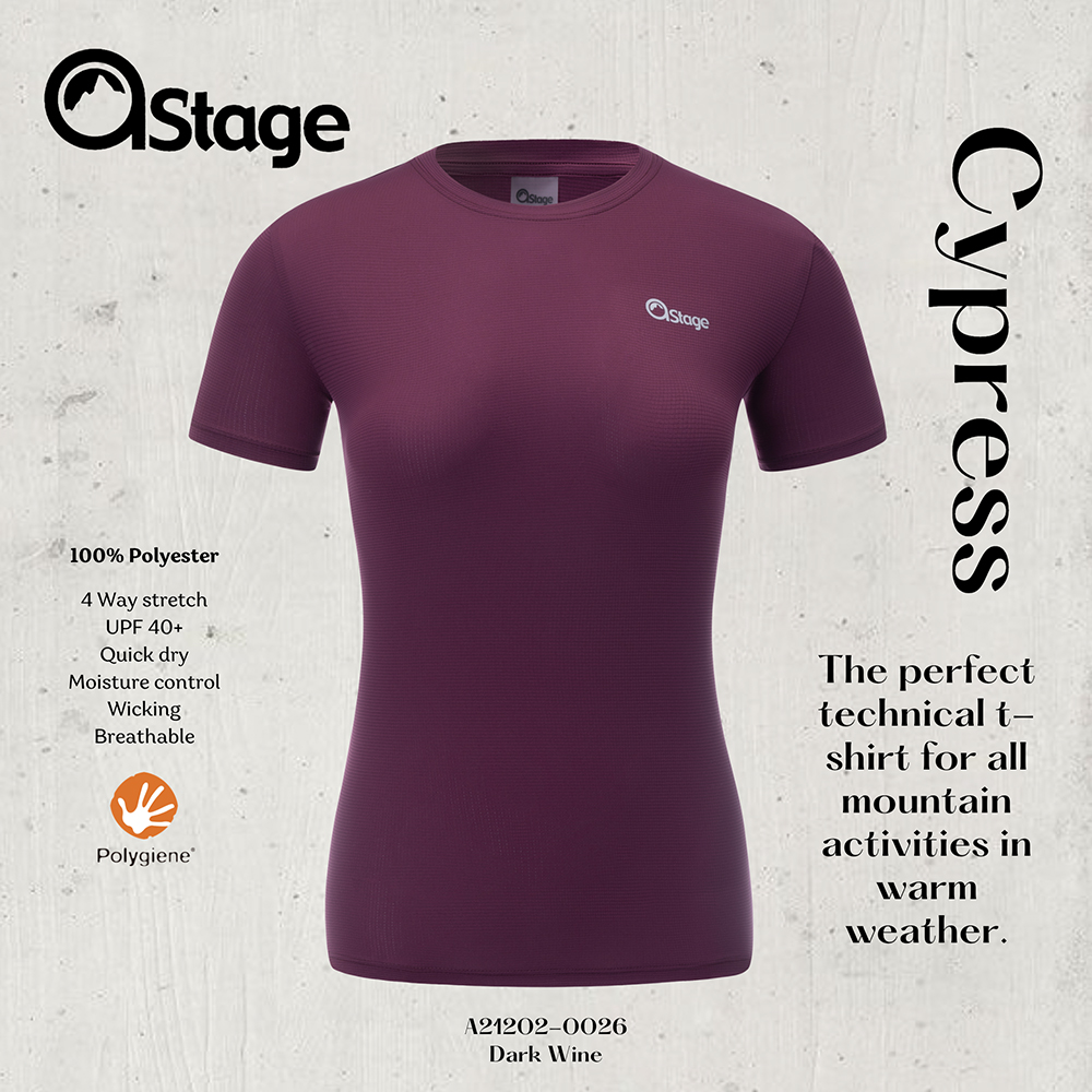 【AStage 加拿大】Cypress T-Shirt 透氣快乾短袖排汗運動上衣 葡萄酒紫 (A21202-0026)