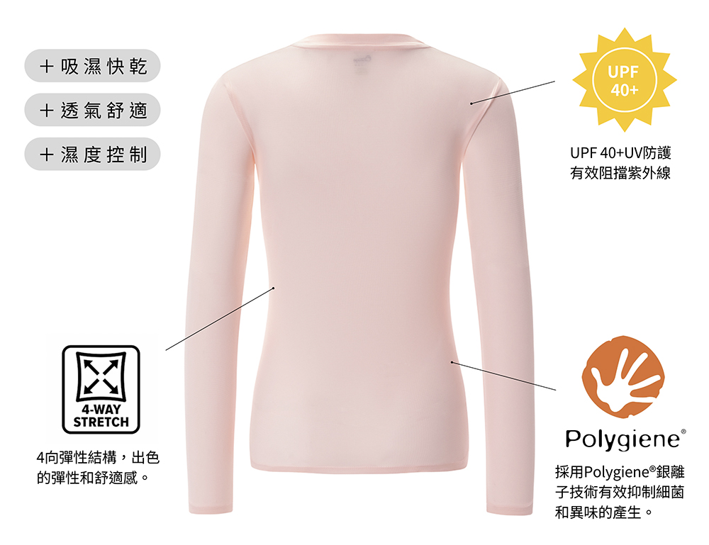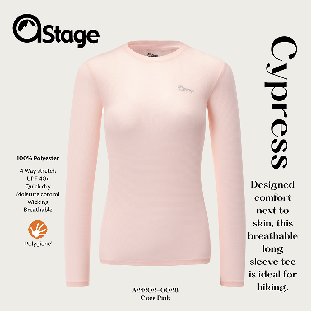 【AStage 加拿大】Cypress T-Shirt 透氣快乾長袖排汗運動上衣 女 高斯粉 (A21202-0028)