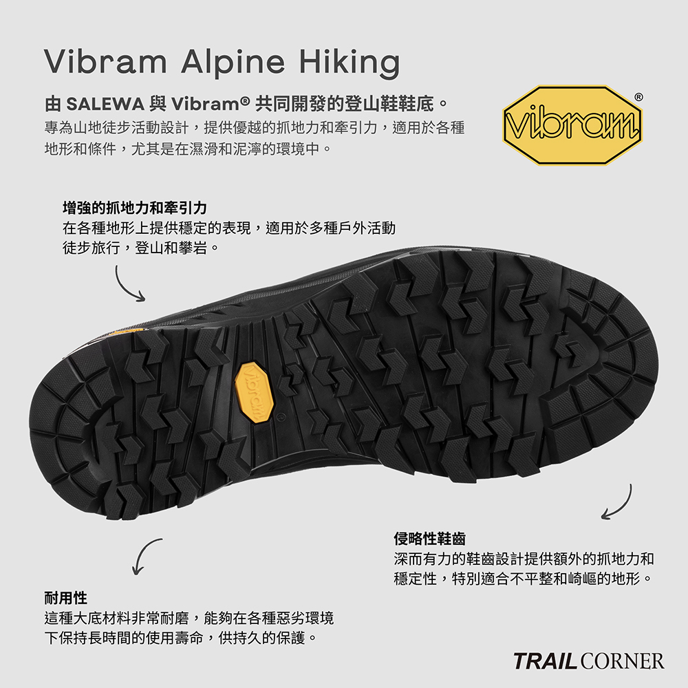 └ 由 SALEWA 與 Vibram® 共同開發的登山鞋外底技術。