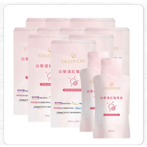 含白藜蘆醇純量250mg以上 N-乙醯基-D-葡萄糖胺(NAG) 500mg 芝麻萃取物(芝麻素) 12.5mg 專利余甘子萃取物 250 mg 越桔萃取物 250 mg 日本專利流行鏈球菌發酵物 40mg 法國專利香瓜萃取物 10 mg 日本專利魚子精華(含DNA) 100mg 法國西印度櫻桃萃取物(含25%維生素C) 250mg 日本專利櫻花萃取物 25mg