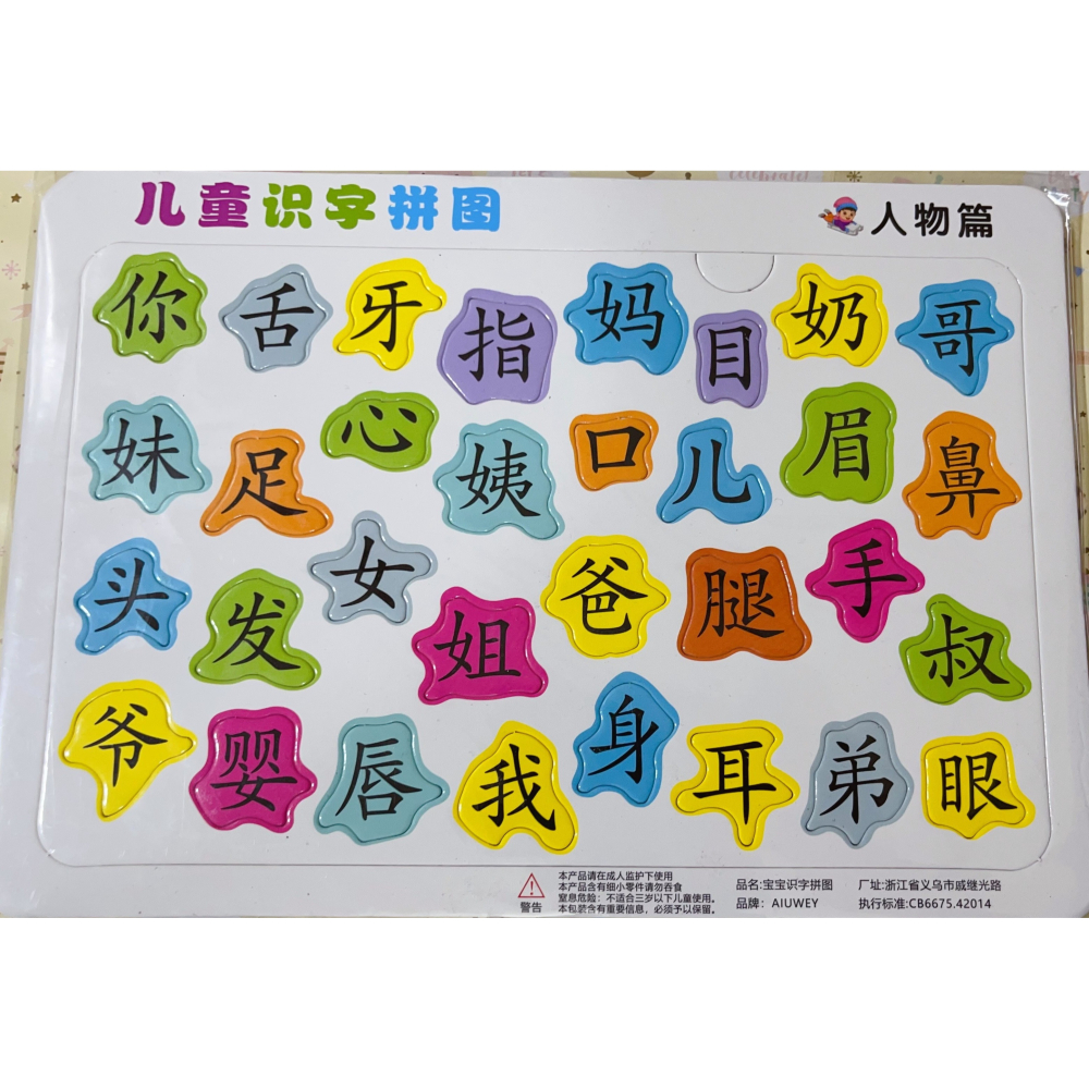 趣味識字拼圖板幼兒寶寶早教漢字認字認知卡片3-6歲兒童益智玩具