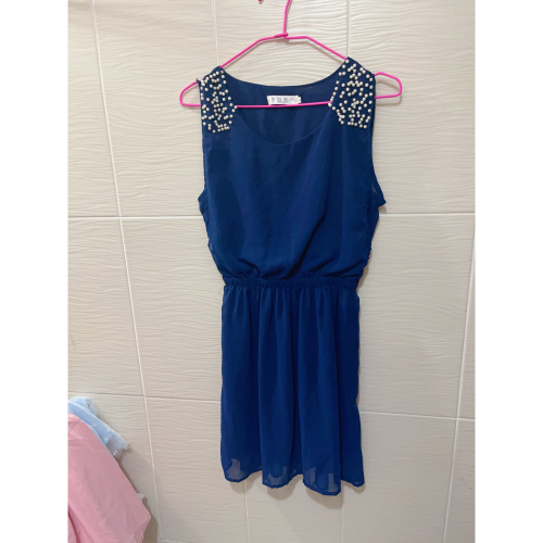 美麗動人無袖連身雪紡珍珠洋裝