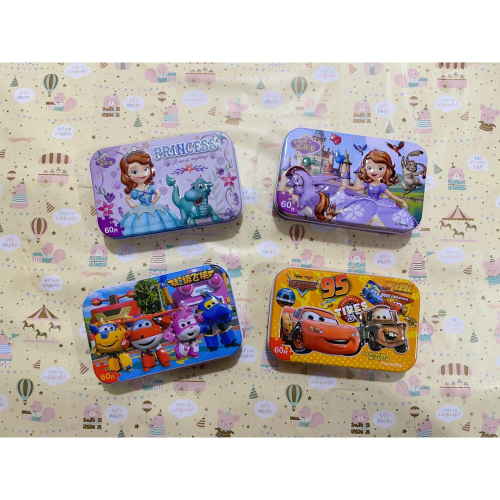 木製鐵盒60片拼圖 🧩 卡通款 PS 拼圖後面有數字有圖片可以看這拼