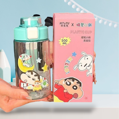 蠟筆小新 500ml 彈蓋雙飲手提水壺 易啟飲 奶茶杯 學生 〝 綠色款 〞