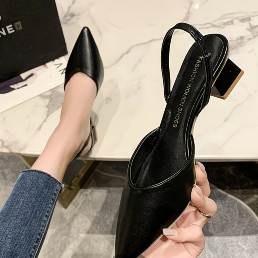 👠尖頭低跟鞋 方跟女鞋 細帶時尚單鞋 大尺碼 〝 跟高 4.5cm 〞〝尺碼 41 號 = 25.5 碼〞