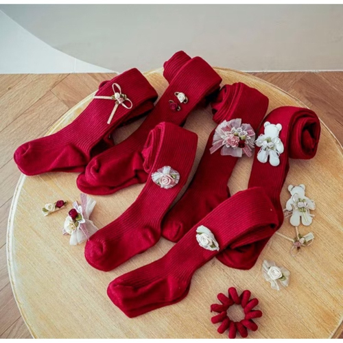 嬰幼兒 紅色內搭褲寶寶週歲喜慶公主風蝴蝶結可愛洋氣女童內搭褲