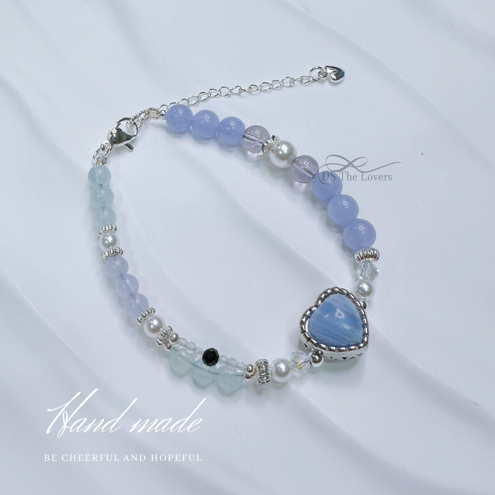 紫紋瑪瑙愛心寶盒12mm、紫玉6mm/4mm、紫水晶6mm、海藍寶4mm、白水晶2mm、黑尖晶3mm