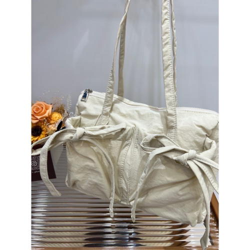 「V+ACC」蝴蝶結托特包 輕量尼龍大容量 米白 霧粉 寶寶藍