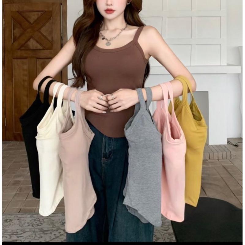 美式復古無袖吊帶背心女秋季2023新款修身顯瘦帶胸墊內搭打底上衣 細肩帶保暖背心 上班族時尚穿搭 邂逅好身材 711