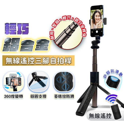 品名:輕巧鋁合金無線遙控三腳自拍桿
