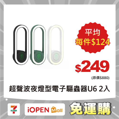 【7-ELEVEN 門市團購】超聲波家用夜燈型電子驅蟲器U6(2入組) 驅蚊/驅鼠/感光小夜燈