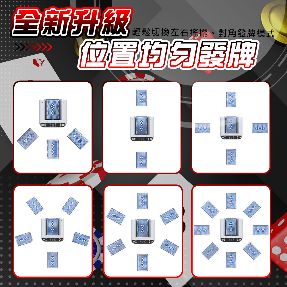 分別為(隨機發牌鍵、+鍵、-鍵、電源鍵、功能鍵、發牌鍵)