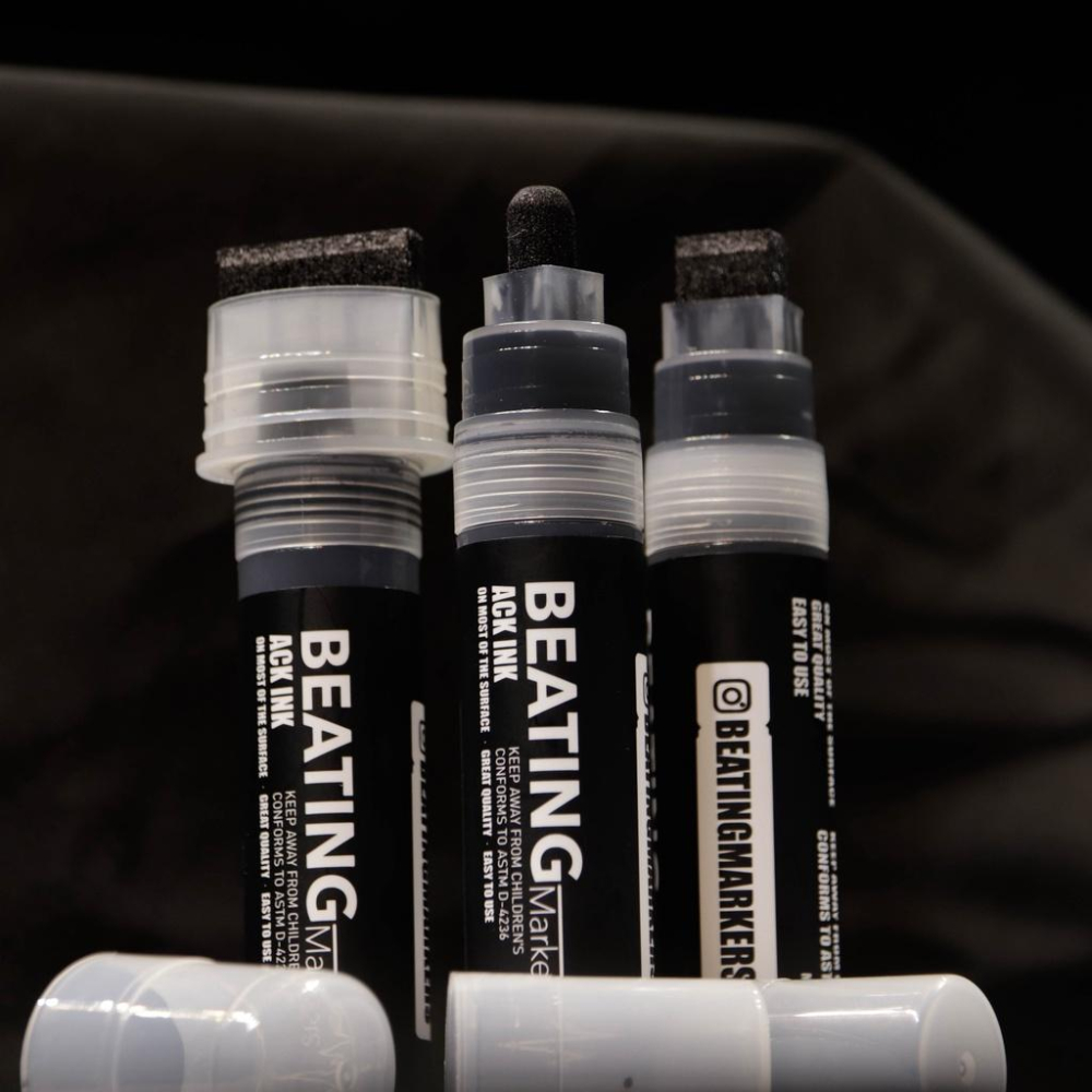 🚨Super dirty! 極度髒手! 🚨此款商品適合塗鴉客使用 依照力道會呈現一些流汁效果,但按壓力道請斟酌 Beating Markers ACK INK 永久性酒精墨水麥克筆, 顏色:紅色藍色黑色 尺寸:8mm/15mm/30mm 墨水滑順 速乾防水 適用各種類型牆面 墨水可補充 耐用型工業筆頭 _ Beating Markers 為台灣原創美術用品品牌 Beating Markers 成立於2017而創辦人推廣街頭藝術塗鴉已有7年之久,卻發現在台灣的藝術家只能選用昂貴的外國品牌,因而開始研發台灣本土塗鴉及藝術創作媒材,讓街頭藝術不再只讓外國品牌專美於前。 經過不斷的研發與實驗我們目前共有十數種不同品項的商品,而我們目前所販售的『刺青筆轉印筆』及『書法麥克筆』更是銷往美國、澳洲、日本...等國家,我們期待台灣不僅能有屬於台灣自己的街頭文化,在使用的產品也能打出自己的招牌! FB: https://www.facebook.com/BeatingMarkers/?ref=page_internal IG: https://www.instagram.com/beatingmarkers/