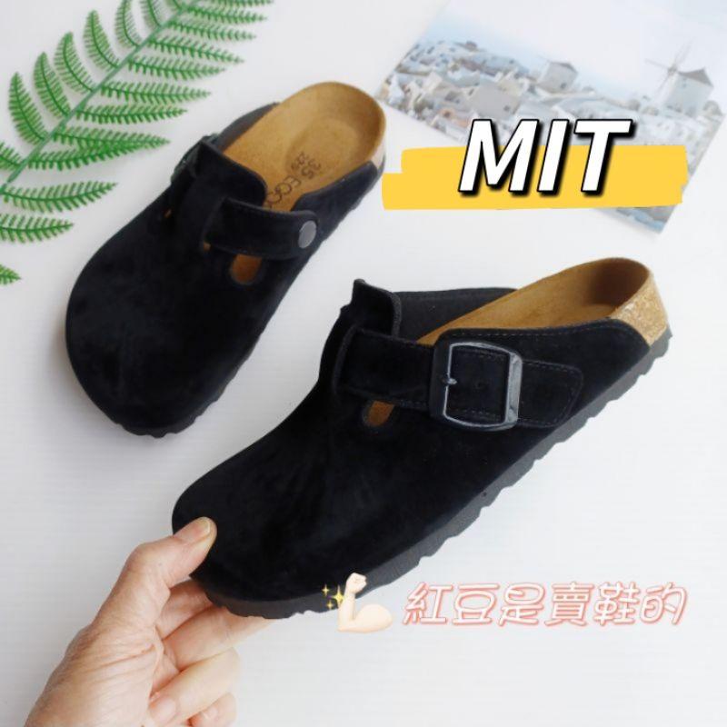 <紅豆是賣鞋的>女生款全黑半包拖鞋、💯台灣純手工製造懶人鞋、全黑絨面穆勒鞋、中底牛皮透氣+專利避震舒軟墊、好穿舒適拖鞋