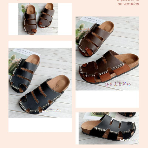 <紅豆是賣鞋的>👍小編狂推男生款懶人鞋🔥超好看鏤空造型穆勒鞋🇹🇼純手工縫線拖鞋、鞋面皮拼絨拖鞋、中底真牛皮吸汗好穿拖鞋一