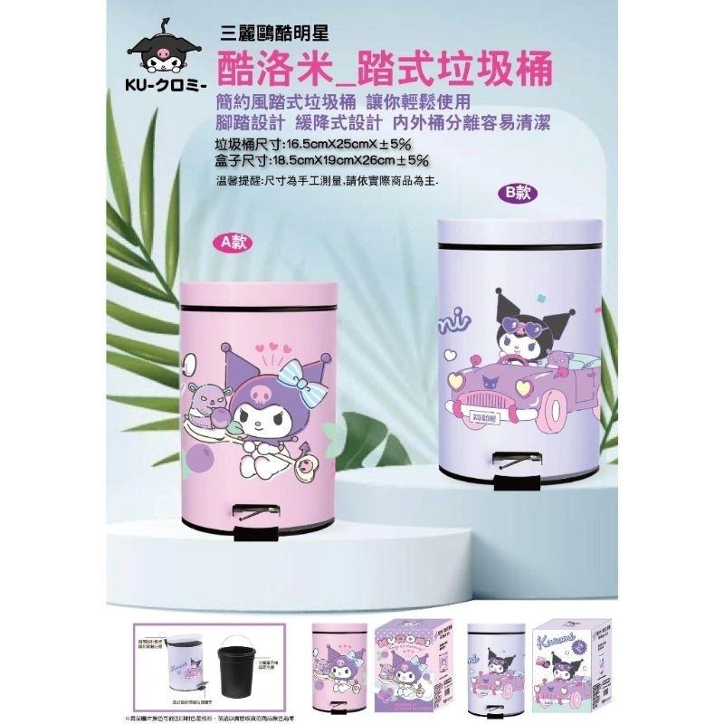 酷洛米 庫洛米 KUROMI 三麗鷗SANRIO正版授權,踏式垃圾桶 馬口鐵 腳踏式垃圾桶 紙屑桶 居家收納』