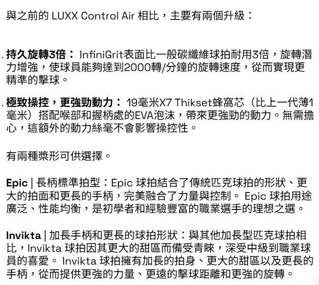 【匹克球】LUXX Control Air With InfiniGrit 藍紫紅黑