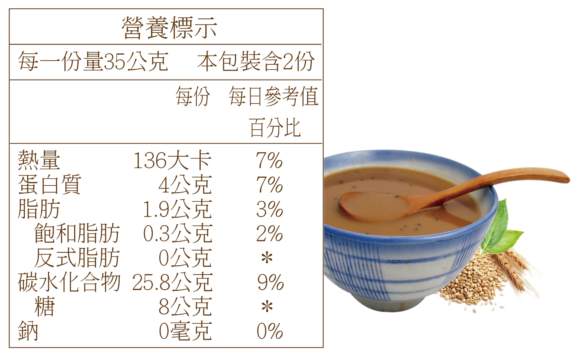 過敏原提示:本產品含麩質之穀物、芝麻及花生製品。