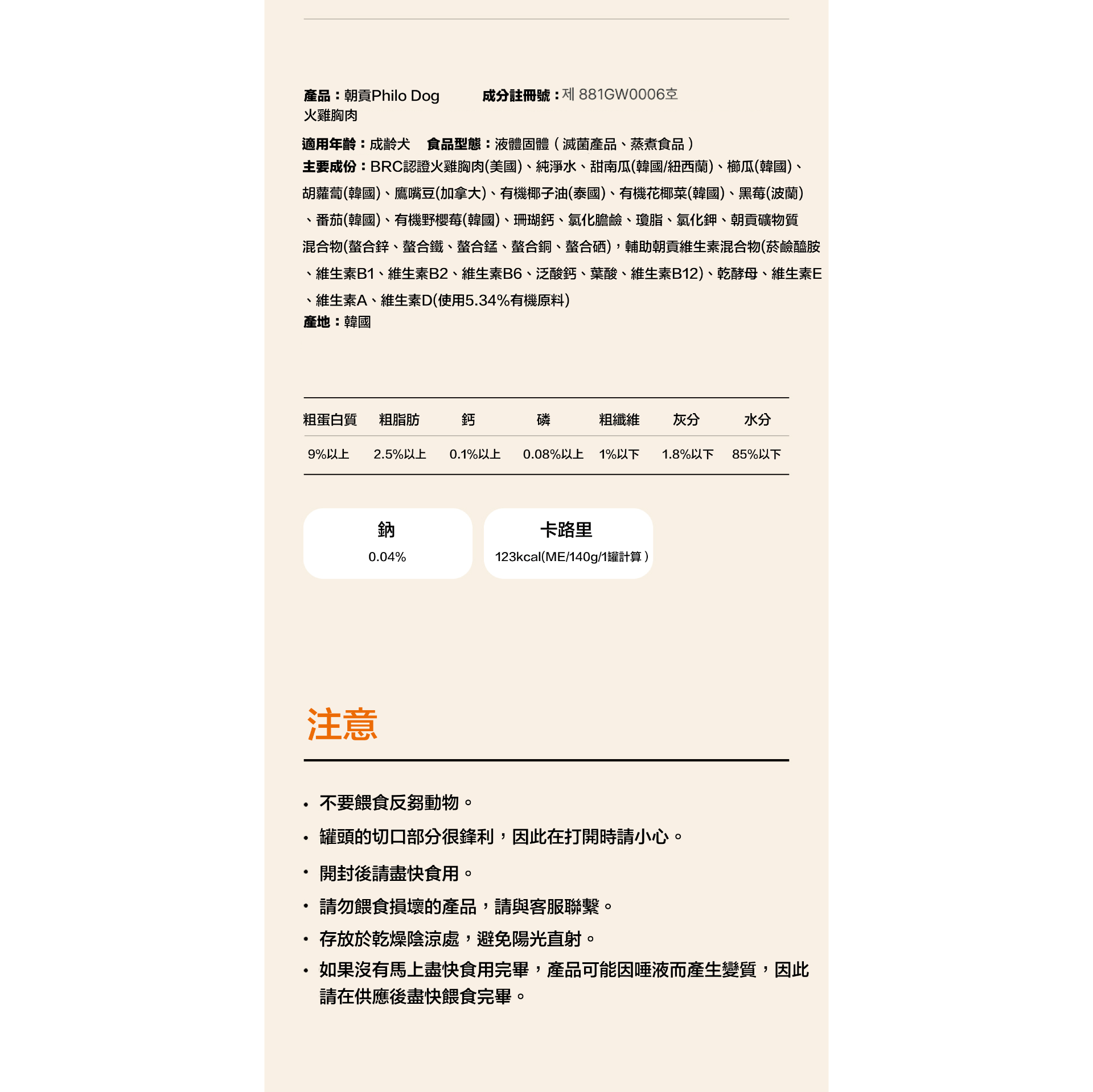 【韓國朝貢】philo系列 犬用主食罐-火雞胸肉