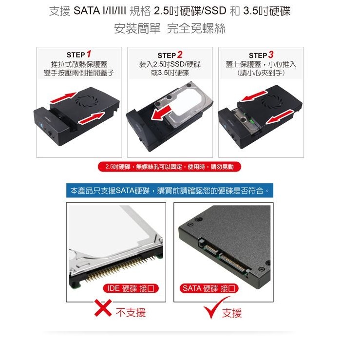 ■ 適用硬碟: SATA I/II/III 2.5吋 HDD / SSD,3.5吋 HDD
