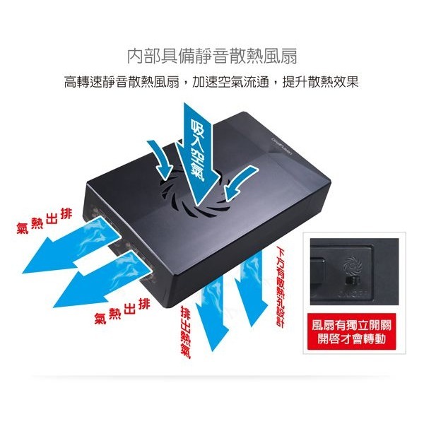 ■ 具有獨立電源7公分靜音散熱風扇,加速空氣流通,提升散熱效果