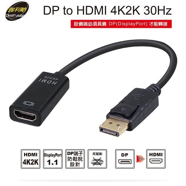 將具備DisplayPort(DP)接孔的設備訊號,轉換成HDMI訊號輸出 支援 DisplayPort 1.1