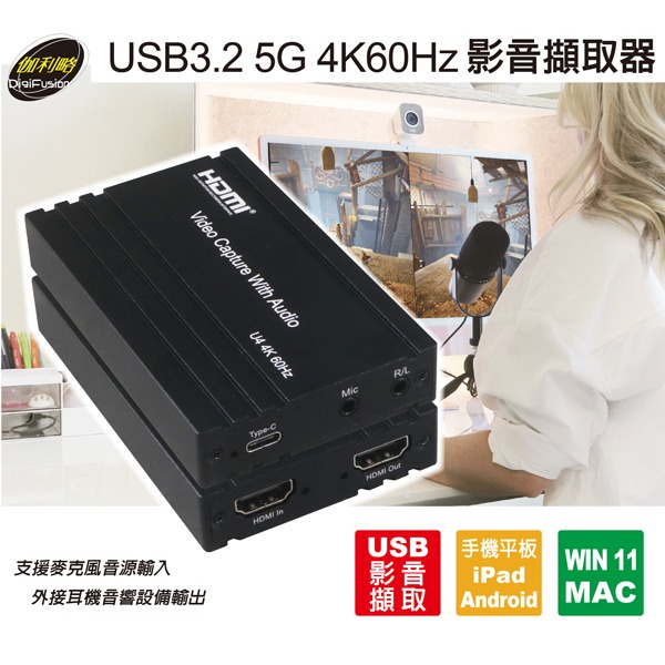 • 符合USB3.0規格,USB影像擷取解析度最高支援:4K@60Hz