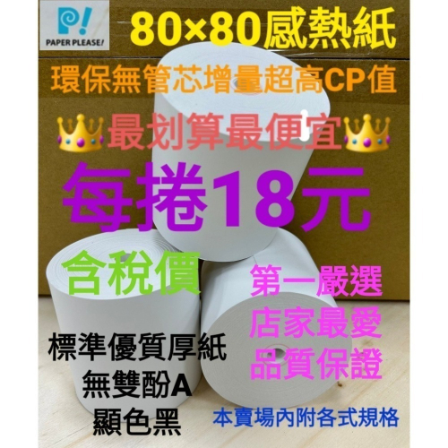 品項一:80×80 每捲18元(60捲/箱),每捲18.5元(30捲/箱)