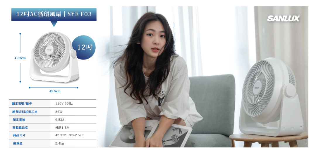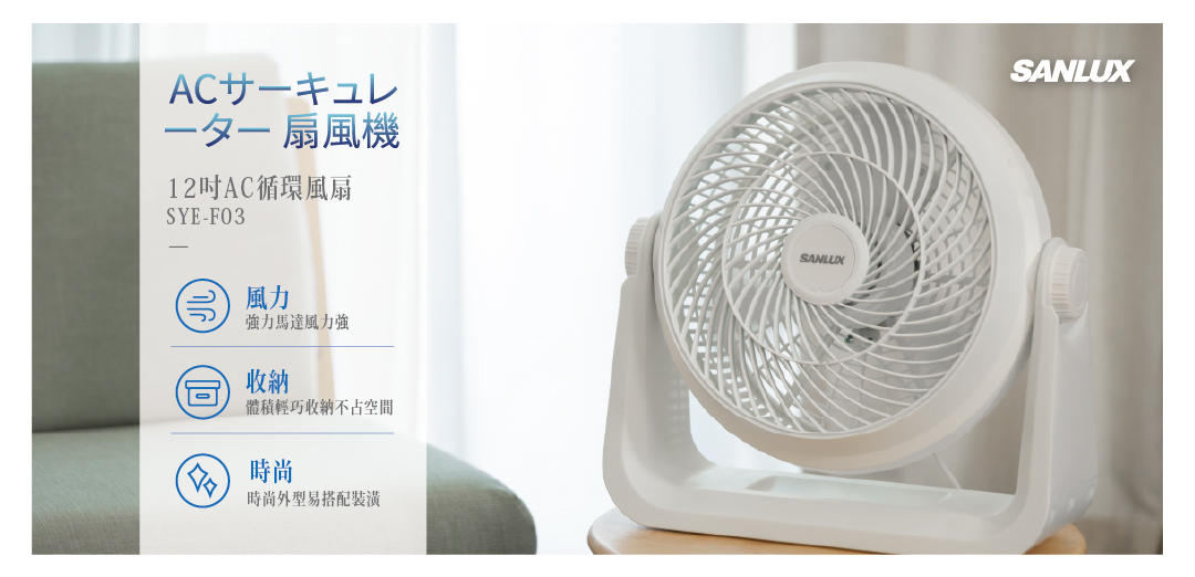 【SANLUX 台灣三洋 】 12吋AC循環風扇(SYEF-F03)