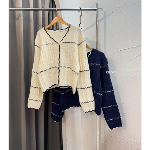 【𝐊𝐈𝐁𝐎𝐘𝐎】秋冬氣息拼線針織開襟外套|現貨