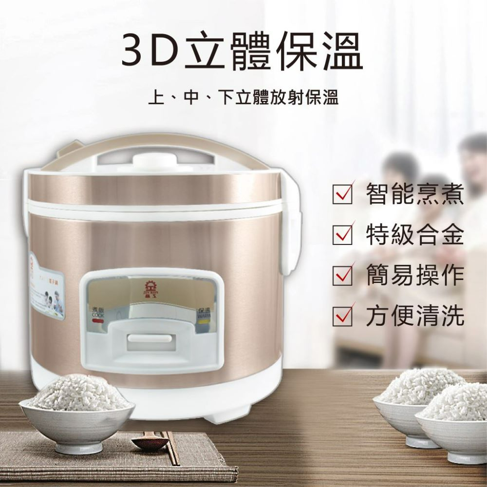 (3) 上、中、下立體放射保溫,煮好的米飯不易變黃。