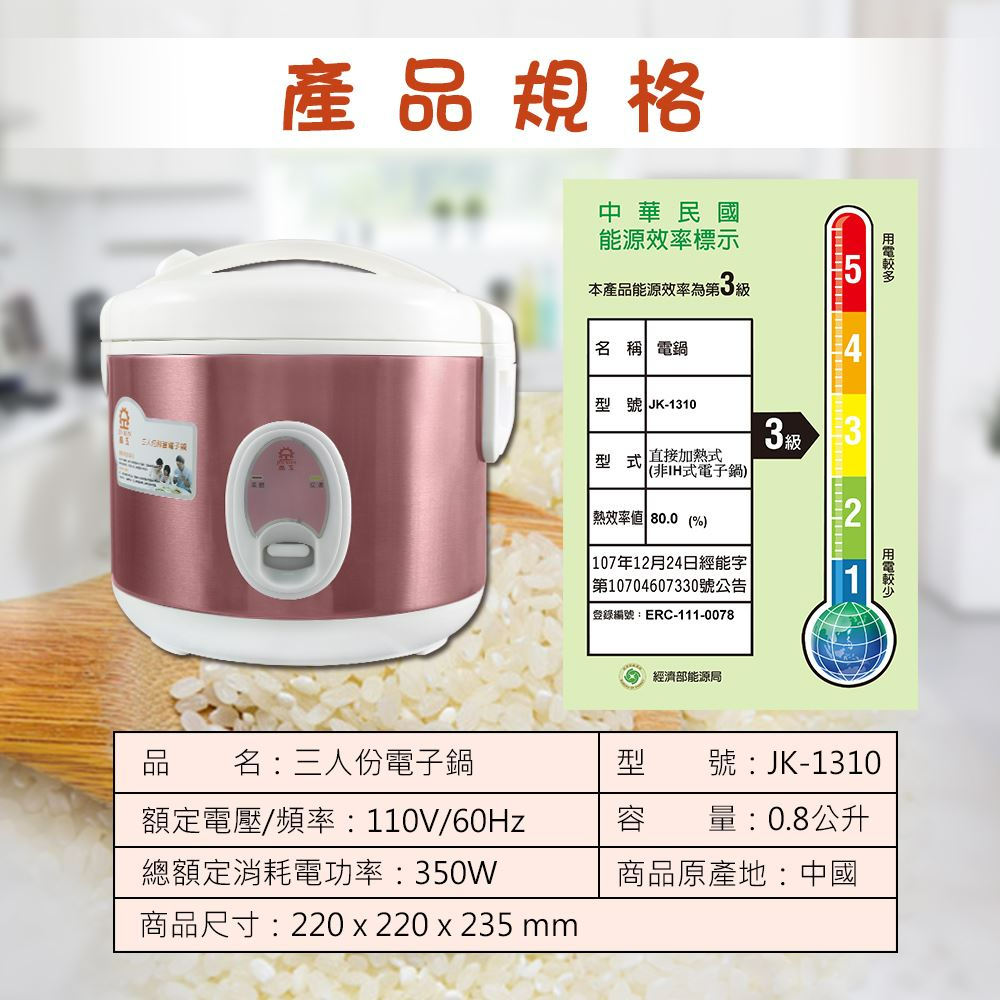 附件:內鍋,量杯,飯勺
