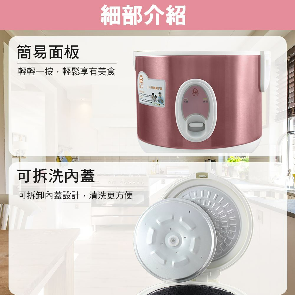 (1) 可拆式內蓋,直熱式炊飯設計,使米飯更加香Q。