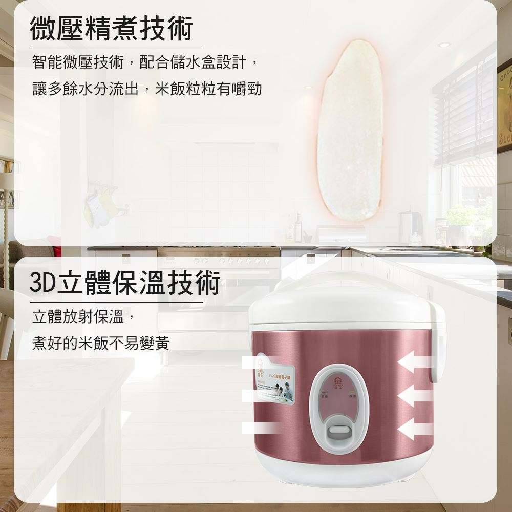 (3) 上、中、下立體放射保溫,煮好的米飯不易變黃。