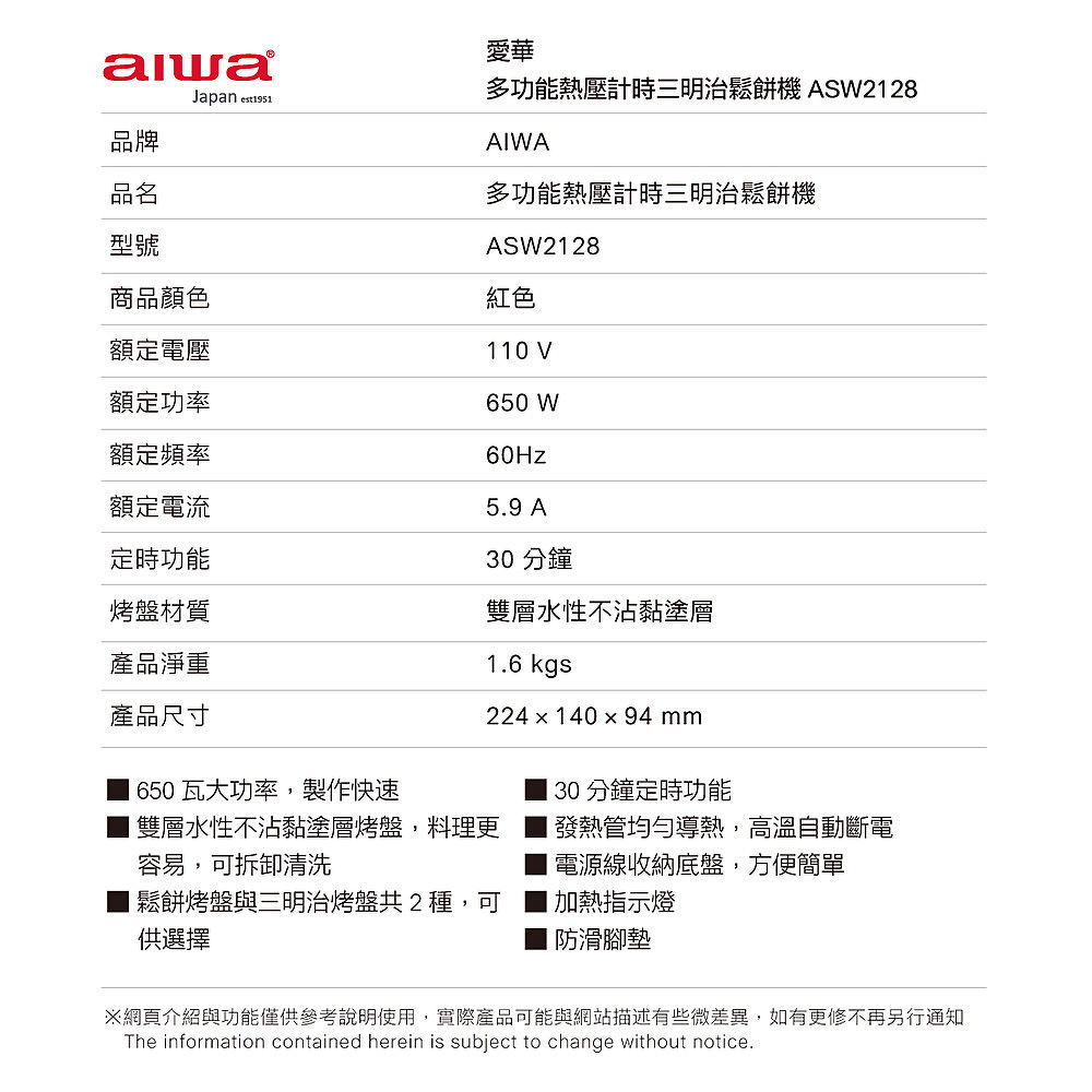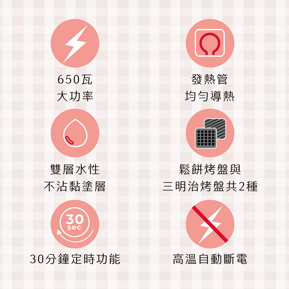 鬆餅烤盤與三明治烤盤共 2 種。