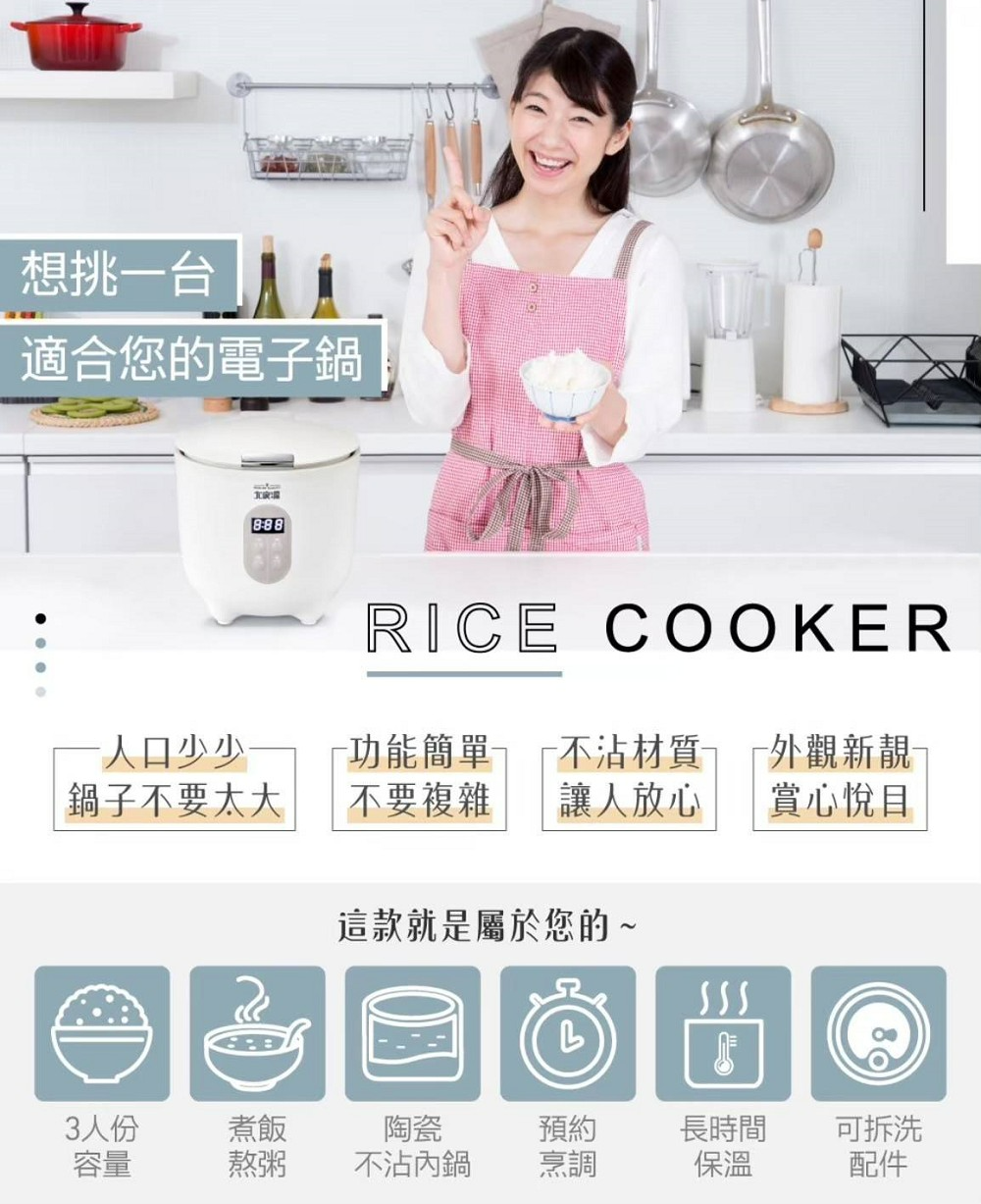 多功能模式:米飯、粥品、定時、保溫/取消。