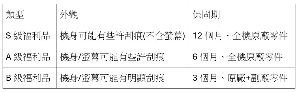 福利品非全新品,外觀上可能會有些許刮傷,或輕微螢幕老化、烙印、白點等,但手機功能皆為正常,介意使用 『二手整新』或內裝為『副廠零件』請勿下單。