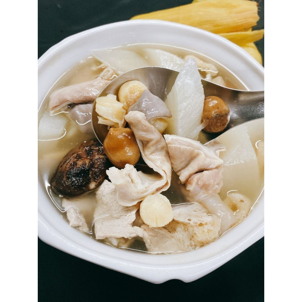 草菇與白蘿蔔:草菇的獨特鮮香與蘿蔔的清甜融合,為濃郁的湯頭增添清爽感。