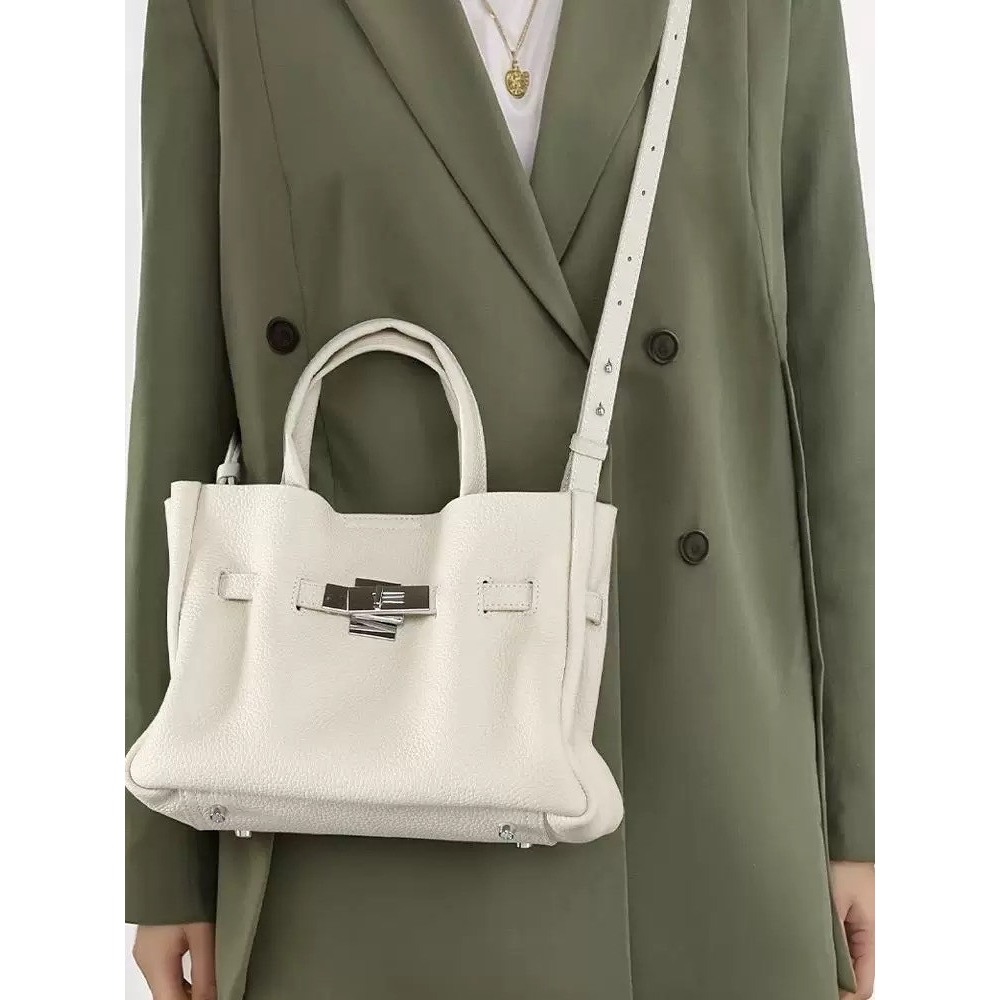 韓國TRO 高級牛皮荔枝軟皮鉑金手提側背包