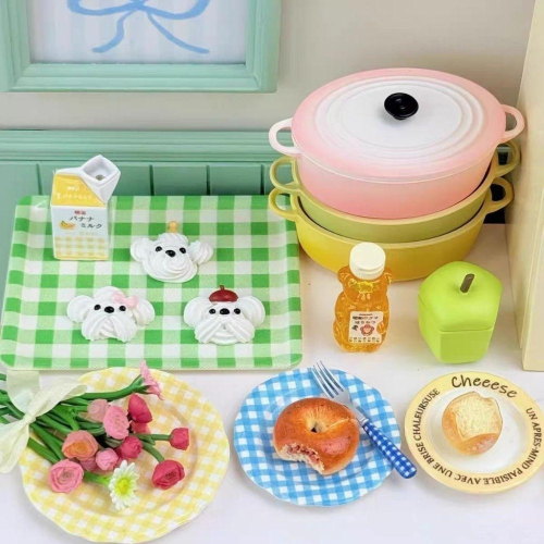 微縮 絲果兔兔醬 奶玻璃 花邊盤 格紋盤 盤子 玫瑰漸層 玫瑰 絲果兔 絲果兔兔 迷你 袖珍 食玩