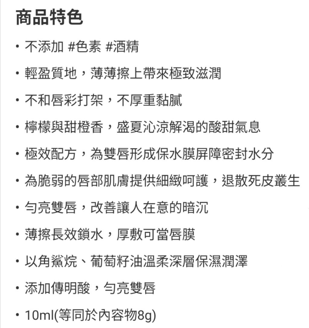 一抹拋光護唇精華霜 10ml:適合沙漠乾荒唇,雲朵系輕盈質地不黏膩,薄薄一層就能還原嫩唇高效潤澤