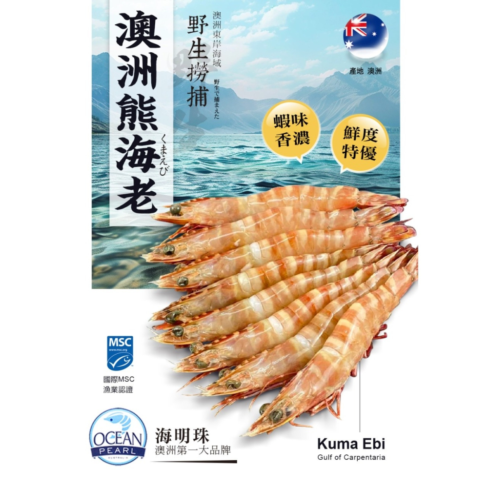 ◎海明珠牌澳洲大蝦,日文稱熊海老,又稱海大蝦或明蝦,產自Gulf of Carpentaria,野生捕撈,船凍品,鮮度第一。
