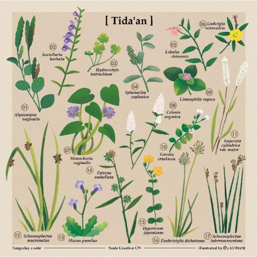 水毛花、通泉草、尖瓣花、台灣天胡荽⋯⋯17種生長在石梯坪海稻米梯田的可愛雜草,一旦看到它們,就知道耕作的農人細心照顧,沒有使用農藥,讓田地有乾淨的水和土壤。