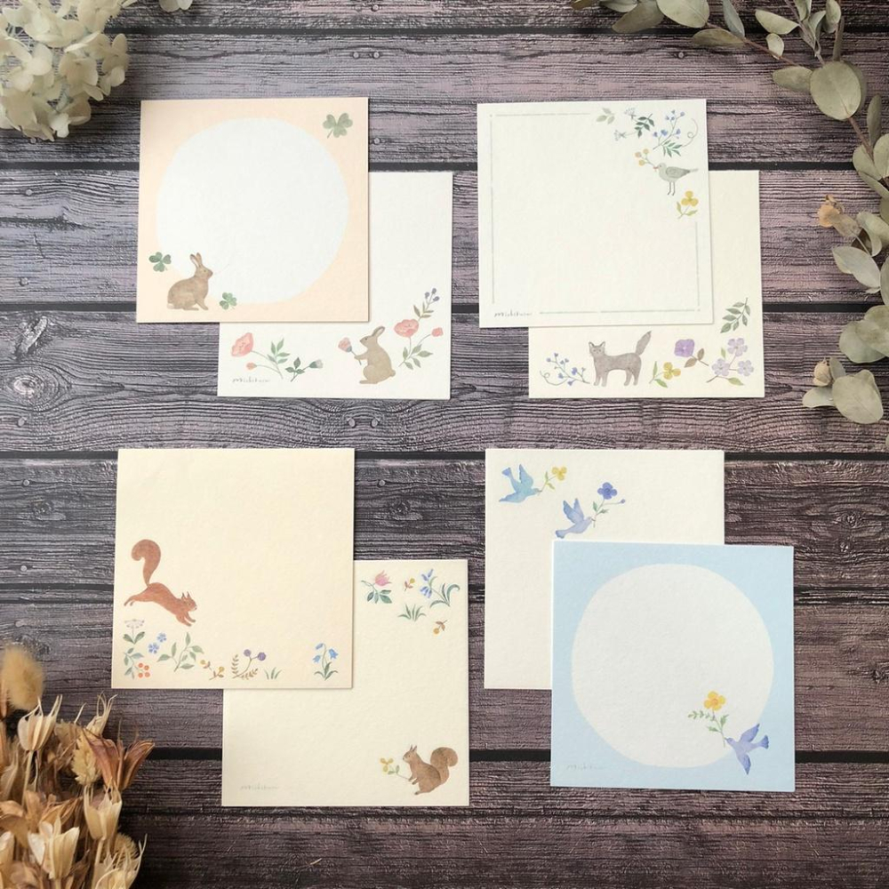 日本 Michikusa|便條紙 4種組合分裝 4種組合分裝 可選擇 兔子、貓咪、小鳥、松鼠 一組包含2款圖案,各5張,共10張 材質:日本和紙 尺寸:10x10cm 紙張使用日本和紙 蓋章或寫字留言當禮物最棒了! 搭配可愛的動物們 心意滿滿~ 下單前請先參閱以下說明唷(´∀`) --------------------------------------------------------------------- 1.購買商品金額須滿$120才出貨喔! 2.手機及電腦螢幕與實際商品,多少會色彩亮度不一樣, 完美主義者建議至實體門市購買 3.貨到付款,記得去取貨喔!