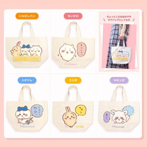 「現貨」日本 吉伊卡哇 小桃貓 刺繡帆布袋 束口袋 帆布包 包包 手提袋 手提包 小八 吉伊[AN.shop]