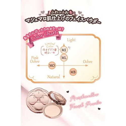 「現貨」日本小香風限量版 11月新上市Canmake 新棉花糖蜜粉餅 定妝蜜粉[AN.shop] 超限量款-小香風Canmake 新棉花糖蜜粉餅 / 定妝蜜粉 聽說媲美高級定妝蜜粉(E大餅)的平價版~~ 這一次出了小香風包裝超有質感的,外面熱門地點已經早就搶不到囉!! 現貨所剩不多,要搶要快 迷你小巧的東西令人愛不擇手,真是超可愛!尤其大家現在都是小廢包在手,迷你粉餅不佔空間!隨時隨地補妝最適合! 蜜粉餅如棉花糖般絲滑、輕柔,為你打造啞緻的底妝效果,隱藏粗大毛孔及凹凸不平等面部瑕疵。 🌟控油配方:採用防油光粉末,輕印於臉上可吸去多餘油脂,保持底妝清爽感。 🌟美肌成分:蘊含15種護膚精華,修護粗糙、乾裂的肌膚。 🌟天然礦物成分:以親膚的天然礦物成分研製,性質溫和,給肌膚零負擔。 🌟防曬功效:SPF50 PA+++,能阻擋紫外線,進一步保護肌膚。 色號選擇: MO 明亮膚色:啞調淺黃色,讓您的肌膚即時變光亮。 MB 自然膚色:啞調微淡黃色,輕易融合您的膚色。 ML 透白膚色:啞調透白膚色,呈現透亮感的淺膚色。 MI 淺象牙色:即時均勻及提亮膚色。 ------------------------------------ 數量限定「 粉色斜紋軟呢 限量版粉盒」新上市!實品真的超級美,ㄧ定要收藏起來 有2個顏色 有含粉餅跟粉撲喔 1.小香風限量 潤色版 Abloom01 (粉色) 一款具有透明棉花糖般肌膚質感的蜜粉,為您帶來棉花糖粉般的啞光效果. 透過混合 5 種顏色,您可以修正膚色並改善膚色!SPF19/PA++ 耐汗、耐皮脂,長時間防止彩妝褪色。 2. 小香風限量 透亮版 Abloom01 (紫色) 透明白雪公主、亮澤感 蜜粉能讓您的肌膚持久煥發光澤,就像經過拋光一樣。。 只需塗上一層即可打造通透、有光澤的肌膚。 透過混合5種顏色,可以糾正暗沉和膚色不均,提亮膚色! 讓您的肌膚長久保持清透透亮。 抗汗、抗皮脂能力強,不易脫妝。 含有15種精華液成分,防止肌膚乾燥。 SPF24/PA++保護肌膚免受日常紫外線的傷害,單獨使用時,只需用洗面乳或肥皂即可去除! 使用順序:保養→底妝→粉底(建議液/霜型)→本品。 打造自然妝容時,塗抹底妝後立即塗抹本產品即可。 【如果想要牢固定妝】:用粉撲打圈去除粉末。 【如果想要自然提亮】:用粉撲以半圓形的方式去除粉末。 ★第一次使用時,用粉撲按摩使顏色融合。 ★輕輕拍打,打造蓬鬆妝容。我們還建議您用手指挑選 您最喜歡的顏色並精確地使用它! 潤色版定妝蜜粉餅 風透亮版定妝蜜粉餅