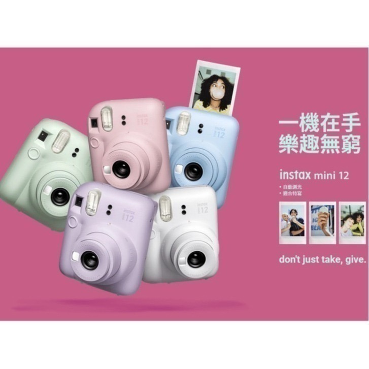 Fujifilm 宣佈推出 Instax Mini 12 即影相機,外型比 Mini 11 很相近,但 Mini 12 明顯有點「發脹」的感覺。Instax Mini 12有 5 種顏色,分別有櫻桃粉、薄荷綠、黏土白、紫藤紫和淡藍色。