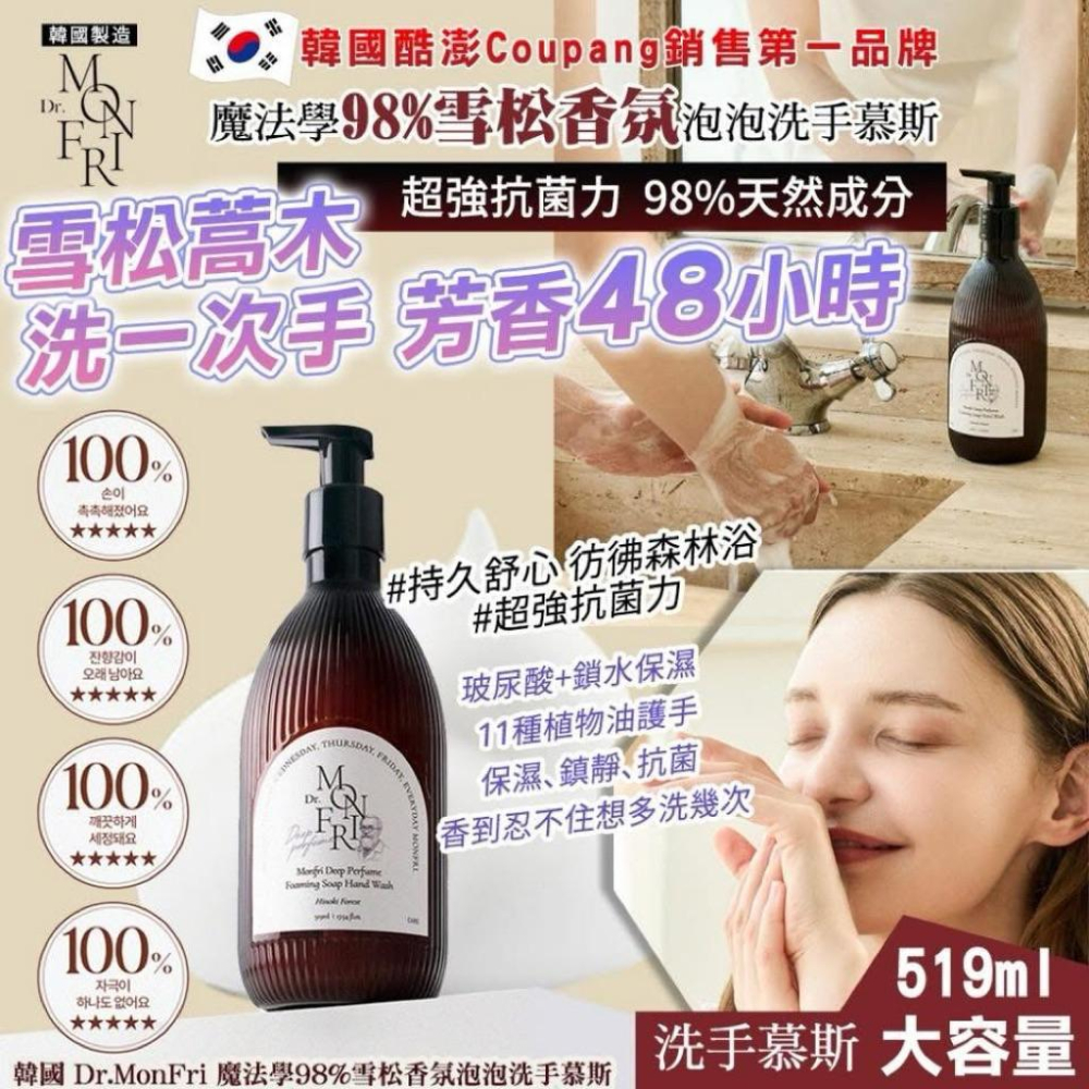 韓國 Dr.MonFri 魔法學98%雪松香氛泡泡洗手慕斯519ml