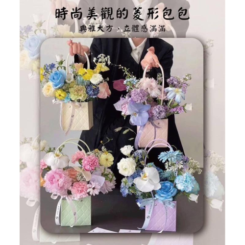 【現貨商品 快速出貨】馬卡龍菱格手提袋系列 壓紋手提袋 花束提盒 馬卡龍 禮物袋 花束包裝