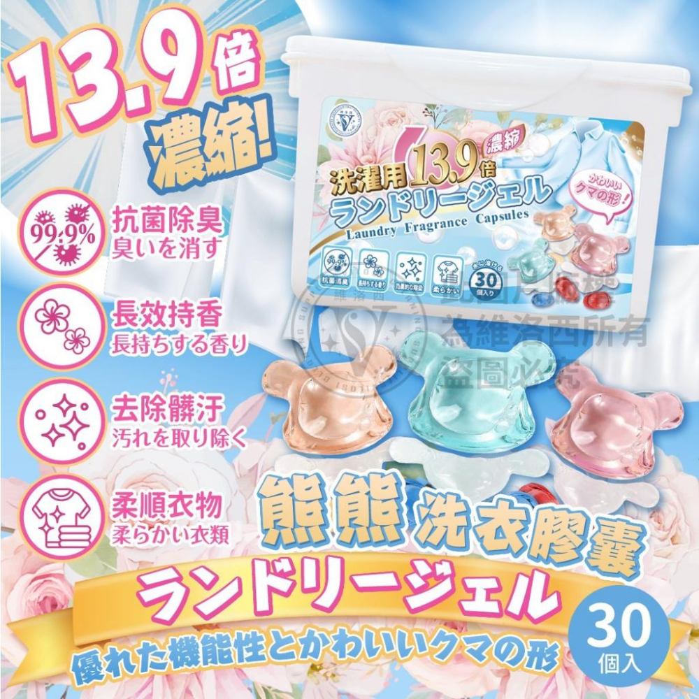 🧼✨ 看這裡!維洛西波利熊洗衣膠囊 🐻✨ 覺得洗衣程序太多很麻煩嗎?不用擔心!我們有解決方案!維洛西波利熊洗衣膠囊,多效合一!已經準備好來拯救你的衣物啦!💪🌟 🌈 功效一:強效清潔 這不只是一個普通的洗衣膠囊,它比一般洗潔精強了整整 13.9 倍!💦💥 讓污漬消失無影蹤,簡直是魔法! 🌼 功效二:長效留香 我們的熊熊洗衣膠囊不僅清潔,還能保持衣物綿綿香氣長達 7 天!🌸🐻 走近你的衣櫥,你將感受到天堂的香味! 🦠 功效三:抑菌除臭 99.9%抑菌消臭!擺脫煩人的細菌和異味!我們的熊熊洗衣膠囊有強大的抑菌除臭功能,讓你的衣物一直保持清新!🧼🌿 🌈 功效四:柔順衣物 不僅乾淨,還柔順!溫和對待你的衣物,不傷衣服!洗過的衣服柔軟舒服,讓你愛不釋手!👚🧸 ✨ 產品特色✨ 🌸香水級香氛:(Lelaba33)木質調、(潘海利根狐狸)玫瑰香、小蒼蘭 三款香水味一次擁有!可依據個人喜好變換味道。 💧高分子水溶性膜,遇水即破,滲入纖維內清潔乾淨! 【產品資訊】 品名:維洛西波利熊洗衣膠囊 數量:30入 功效:強效洗淨、抑菌除臭、長效芳香、柔順衣物 有效期限;3年 成分: Antibacterial active substances, biological enzymes, coconut oil, olive oil, stain dissolvers, proprietary fragrances 所以,現在就選擇維洛西波利熊洗衣膠囊,讓你的洗衣日變得更輕鬆、更有趣!不要再猶豫了,讓我們的可愛熊熊照顧你的衣物吧!🐻🌟
